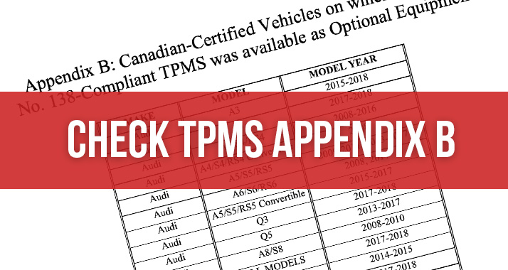 Any vehicle listed on Appendix B of the Department of Transportation’s Tire Pressure Monitoring System (TPMS) list requires proof that the vehicle is in fact equipped with TPMS, which can be proven with either a photo of the TPMS dash light or a build sheet from the seller stating that a TPMS system is installed.